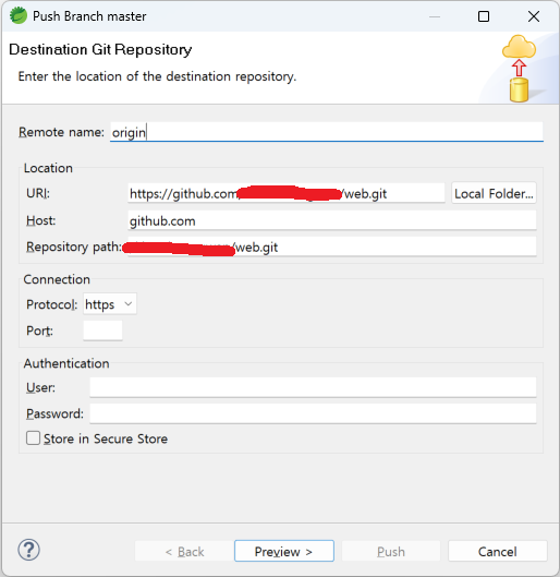 repository 가 생성되었다면 해당 주소를 바라보고 push를 시도하는 데 비밀번호에서 실패.